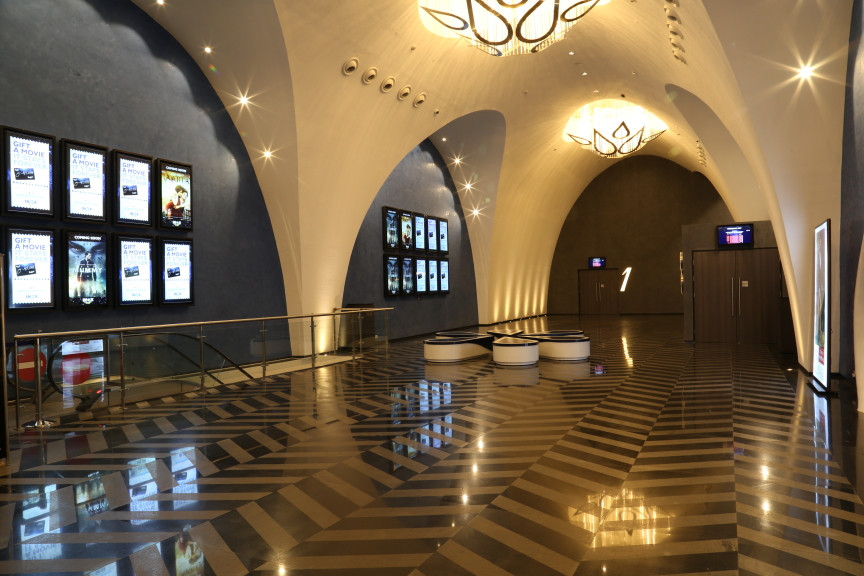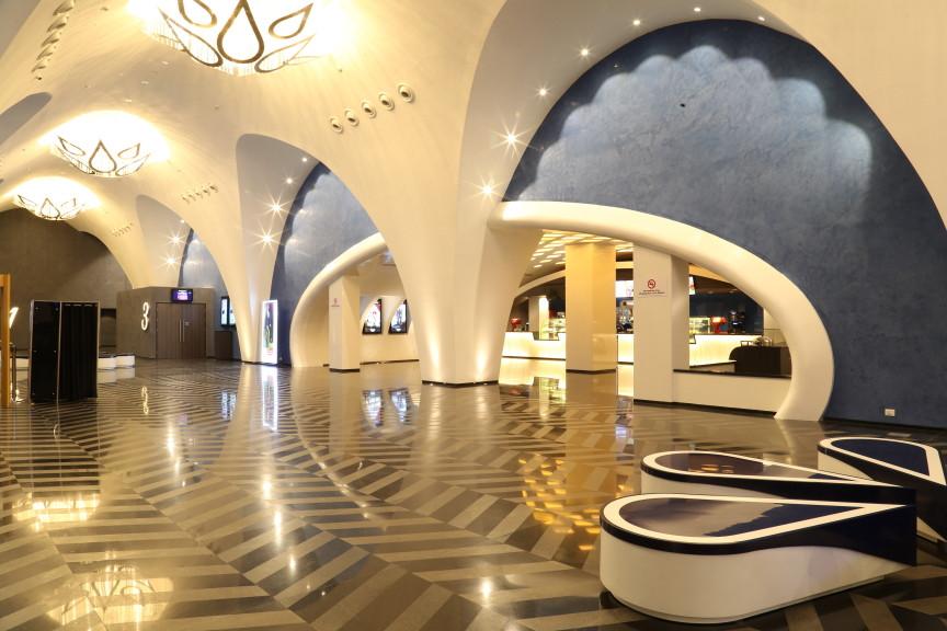 PROJECT EXECUTED FOR INOX CINEMA AT DORABJEE MALL - PUNE. PRODUCT USED WAS MARMORINO IN BLUE AND GREY COLOR IN THE ENTIRE LOBBY AND SABULADOR SOFT GOLD AND RED COLOR.