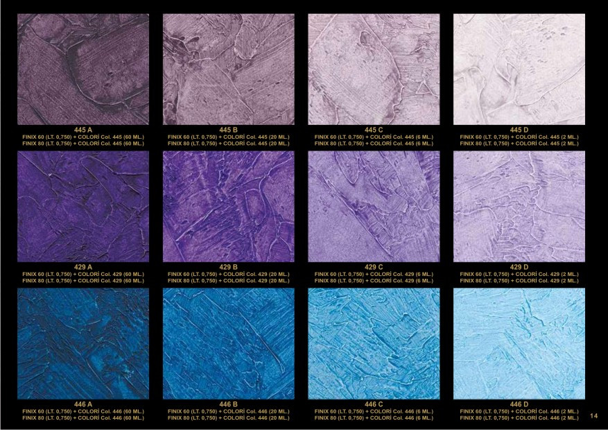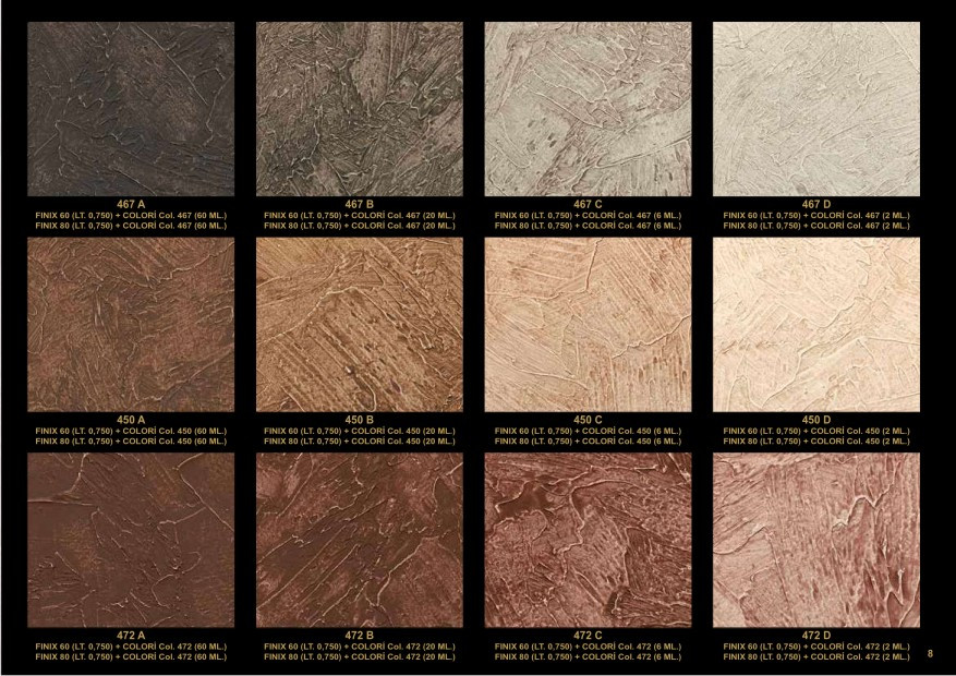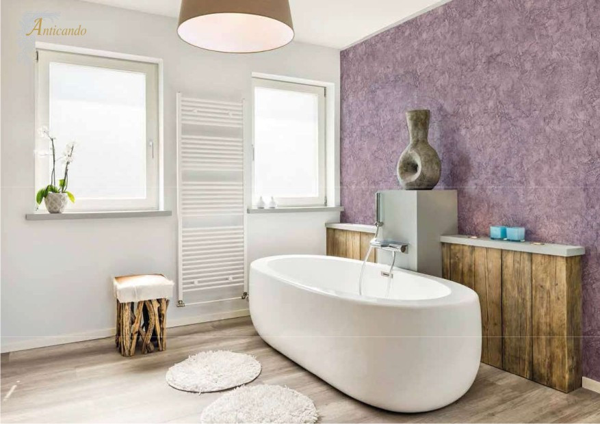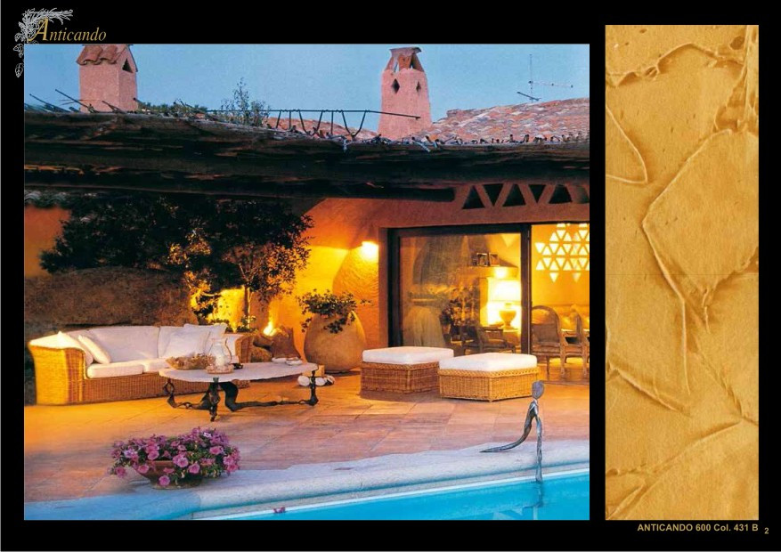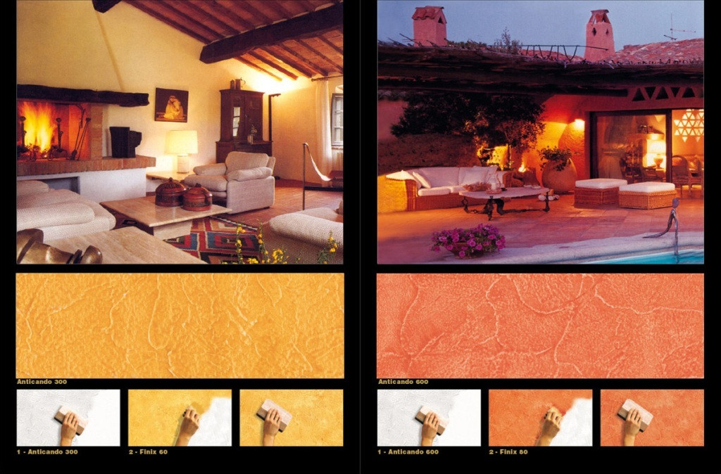 This is a thick coating water-based product which yields special antique effects. ANTICANDO is available in two versions: ANTICANDO 300 for indoor use and ANTICANDO 600 for outdoor use. Both are made using acrylic resins and natural fillers. After application, the decorated surface remains breathable, washable and may be painted over.