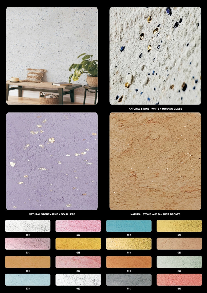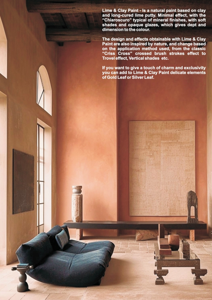 The union of two natural raw materials, which integrate perfectly in the concept of green building and green architecture. Aesthetic effects of great design and highly sought after, developed and recre ated by our master decorators, which are inspired by history, culture and the evolution of the Italian life style.