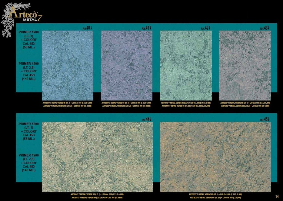 A pearlescent water-based paint for interiors, offering a striking aesthetic impact. Thanks to its constantly-changing mobile effects, ARTECO’ 7 METAL changes colour depending on the position of the observer and the reflected light.